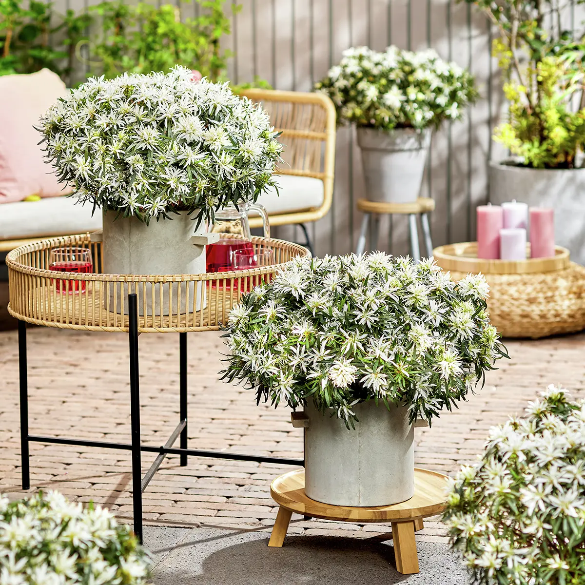 So schaffen Hecken aus immergrünen Pflanzen z.B. einen grünen Rahmen um Ihr Grundstück und pflegeleichte Nadelgehölze wirken gerade im Winter als Strukturgeber. Natürlich dürfen auch in den Beeten einige immergrüne Pflanzen nicht fehlen, damit sich die beschriebene Wirkung genauso auf der niedrigeren Gartenebene wiederholt. Bepflanzungen mit immergrünen Stauden wie Elfenblumen oder Purpurglöckchen erhalten auch in winterlichen Beeten die Spannung und bieten einen Festpunkt, an dem sich das Auge des Betrachters festhalten kann.