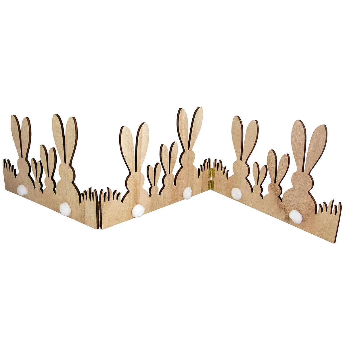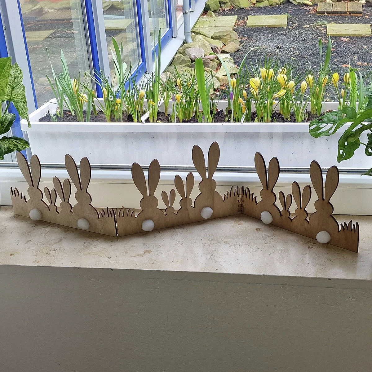 Hasenalarm bei Ihnen zuhause! Diese originelle Dekoleiste lässt sich ganz einfach ausklappen und z.B. als Hingucker auf dem Fensterbrett platzieren. Liebevoll aus Holz gearbeitet. Ca. Länge 27 cm, Breite 0,5 cm, Höhe 17 cm; Länge ausgeklappt ca. 80 cm.