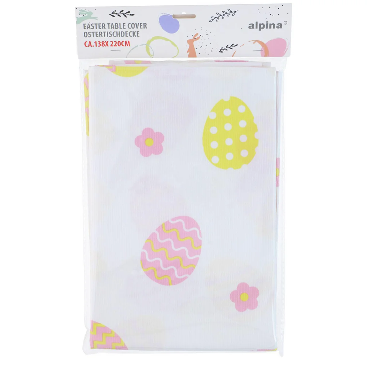 - • Bunte Tischdecke mit fröhlichen Eiermotiven