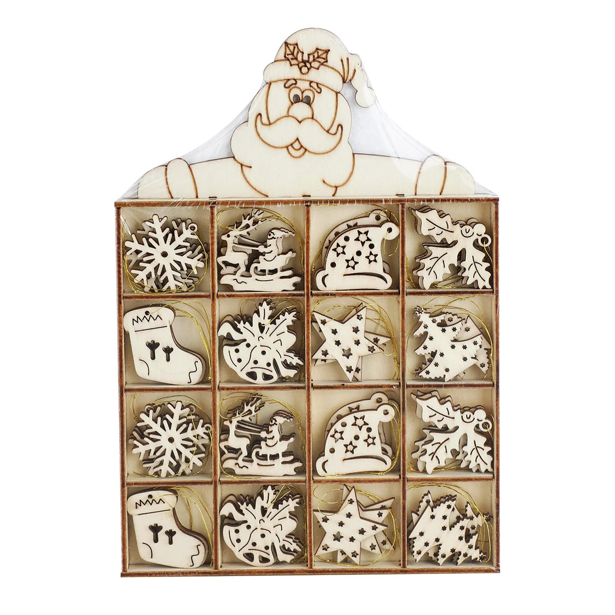 Hier hat der Weihnachtsmann sein schönstes Sortiment für Sie zusammengestellt: In einem hübschen Kasten mit Weihnachtsmannfigur am oberen Rand erwarten Sie 48 detailreiche Holzfiguren zum Aufhängen, darunter Sterne, Stiefelchen und Schneeflocken. Perfekt für kleine Türsträußchen oder auch als Baumschmuck! Aus MDF/Pappelholz.