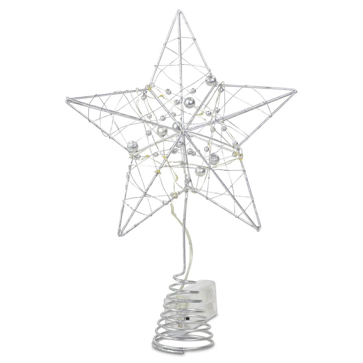 Diese LED-Baumspitze interpretiert die klassische Christbaumspitze ganz neu. Die offene, moderne Gestaltung des Sterns ist mit warmweißen LEDs und silbernen Perlen geschmückt und wirkt somit wie ein filigranes und edles Krönchen auf Ihrem Baum. Mit dezentem Batteriefach. Batterien (2xAA) nicht inkl. Aus Metall.