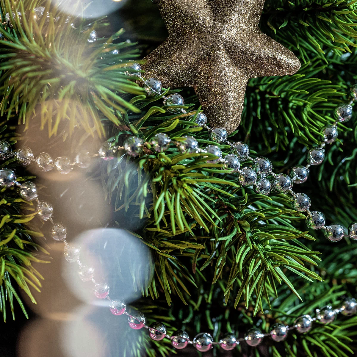 Diese silbern glänzende Perlenkette lädt zu vielfältige Bastel- und Deko-Ideen ein. Schneiden Sie sich die Klette so zurecht, wie Sie sie benötigen, oder nutzen Sie sie am Stück, z.B. beim Schmücken des Weihnachtsbaums. Aus Kunststoff gefertigt. 8 m-Rolle.