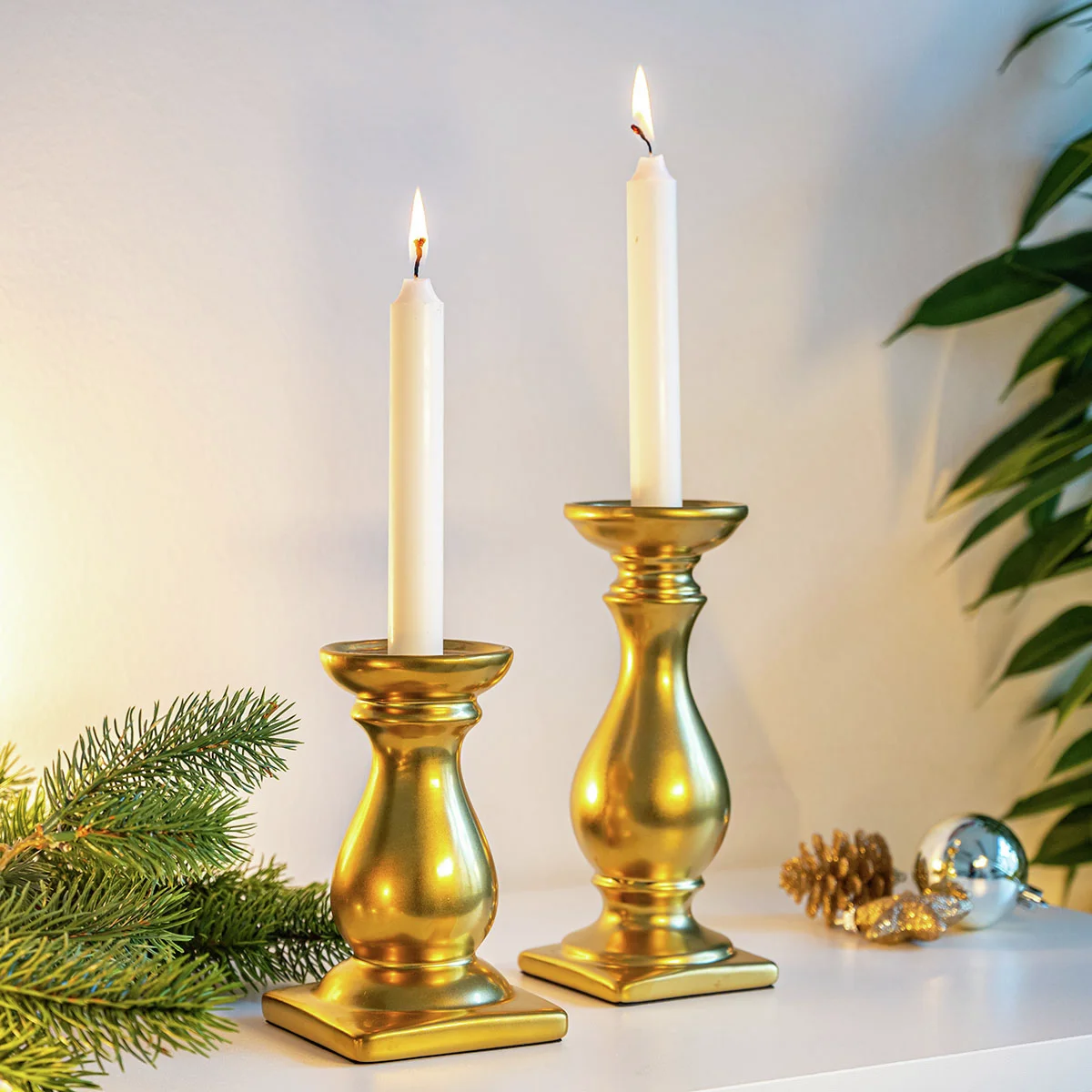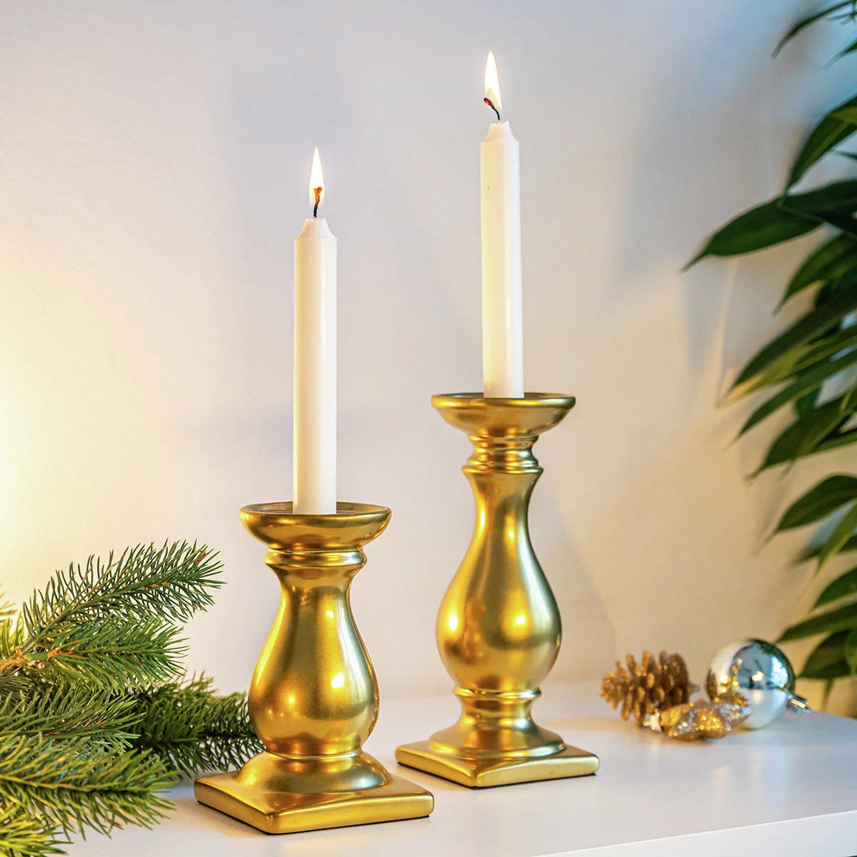Laden Sie zum Candlelight-Dinner und schmücken Sie Esstisch, Fensterbank oder Sideboard mit diesem Hingucker. Gefertigt aus Metall und ganz in Gold gehalten.