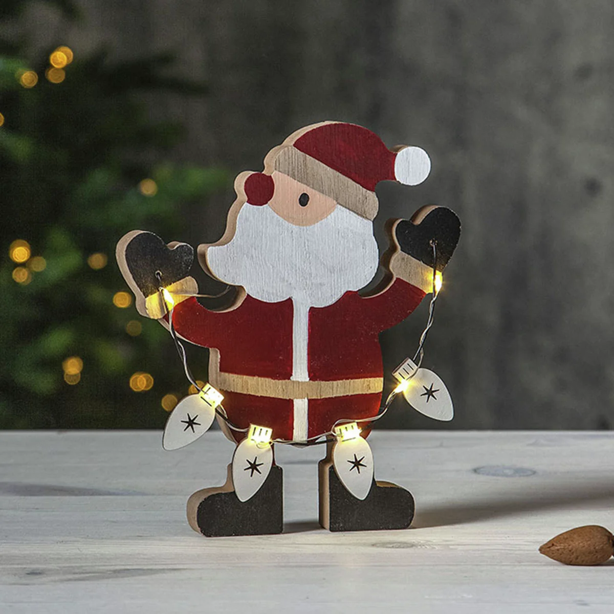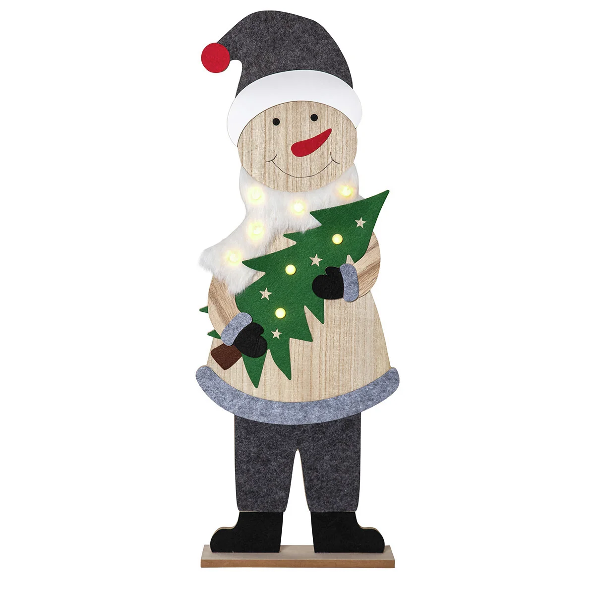Dieser niedliche Schneemann hat alles dabei, was es für ein gelungenes Weihnachtsfest braucht: einen kleinen Tannenbaum, stimmungsvolle Beleuchtung und sichtbar gute Laune. Laden Sie ihn doch gleich zu sich ein! Mit acht warmweißen LEDs und Timer versehen und zwei passenden AA-Batterien inklusive. Aus MDF und Textil detailverliebt gefertigt.