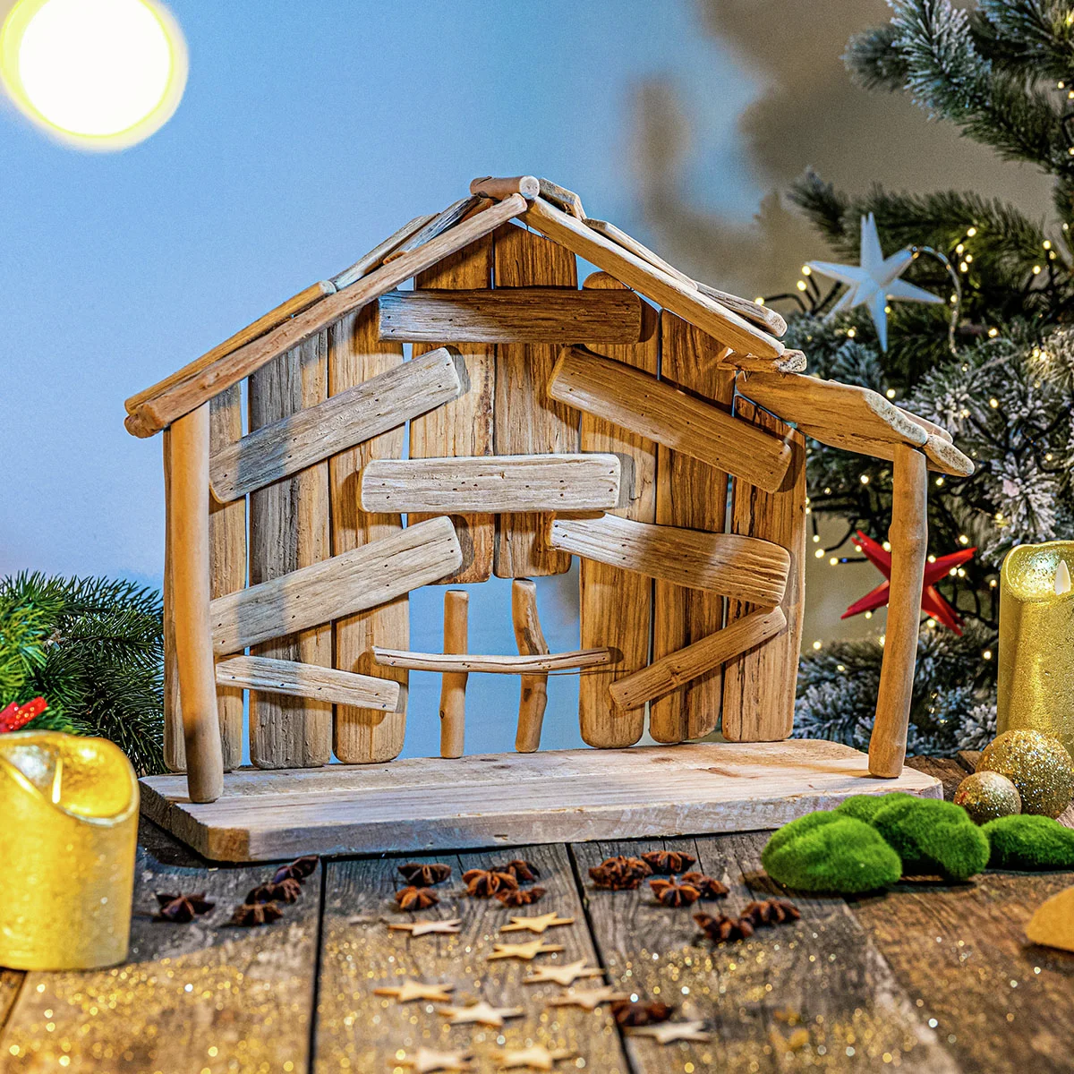 Bei Gärtner Pötschke finden Sie verschiedenste Weihnachtskrippen, zumeist aus Holz, und passendes Zubehör wie Kunstschnee oder Deko-Moos, um ihre ganz individuell gestaltete Krippe zu schaffen.