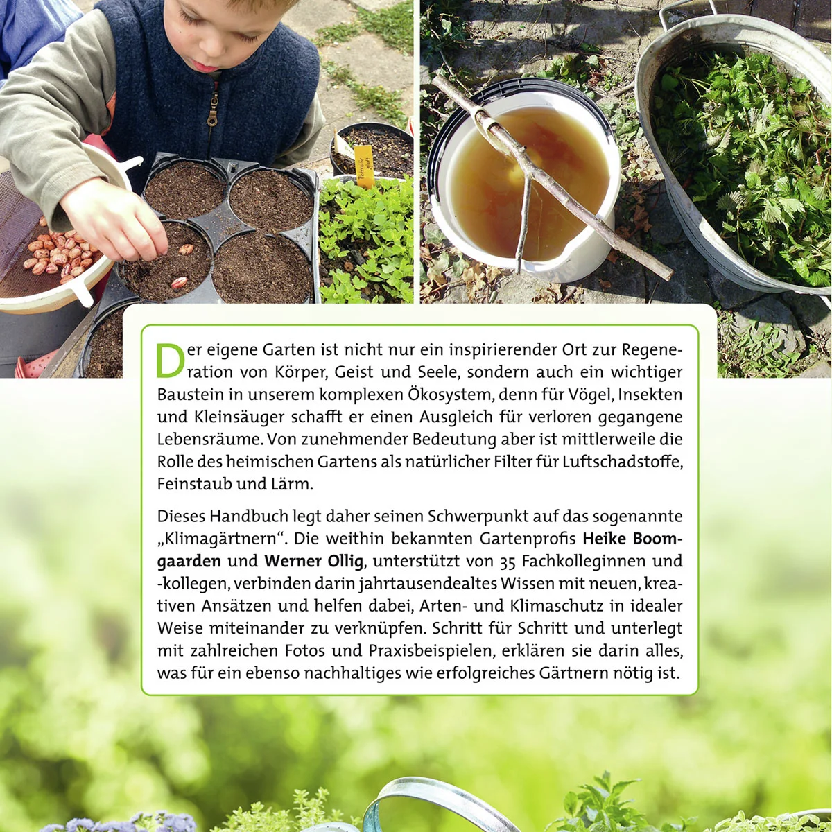 Dieses Handbuch legt daher seinen Schwerpunkt auf das sogenannte Klimagärtnern. Die weithin bekannten Gartenprofis Heike Boomgaarden und Werner Ollig, unterstützt von 35 Fachkolleginnen und -kollegen, verbinden darin jahrtausendealtes Wissen mit neuen, kreativen Ansätzen und helfen dabei, Arten- und Klimaschutz in idealer Weise miteinander zu verknüpfen.