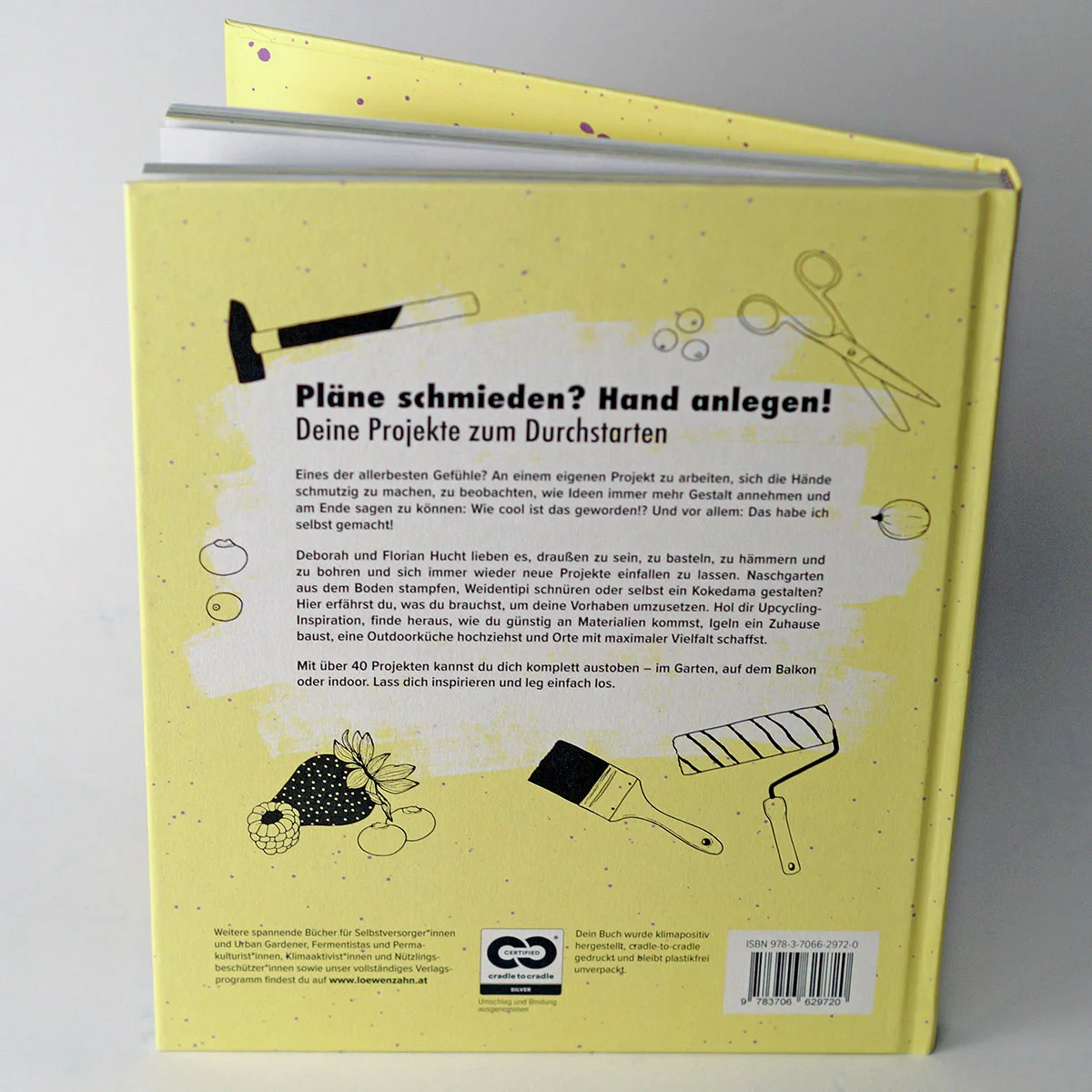 Und dann geht’s auch schon los: mit über 40 Projektideen kannst du dich komplett austoben – im Garten, auf dem Balkon oder in deiner Wohnung. Ob Hummelburg, Outdoorküche, Weidentipi oder Bokashi-Beet: