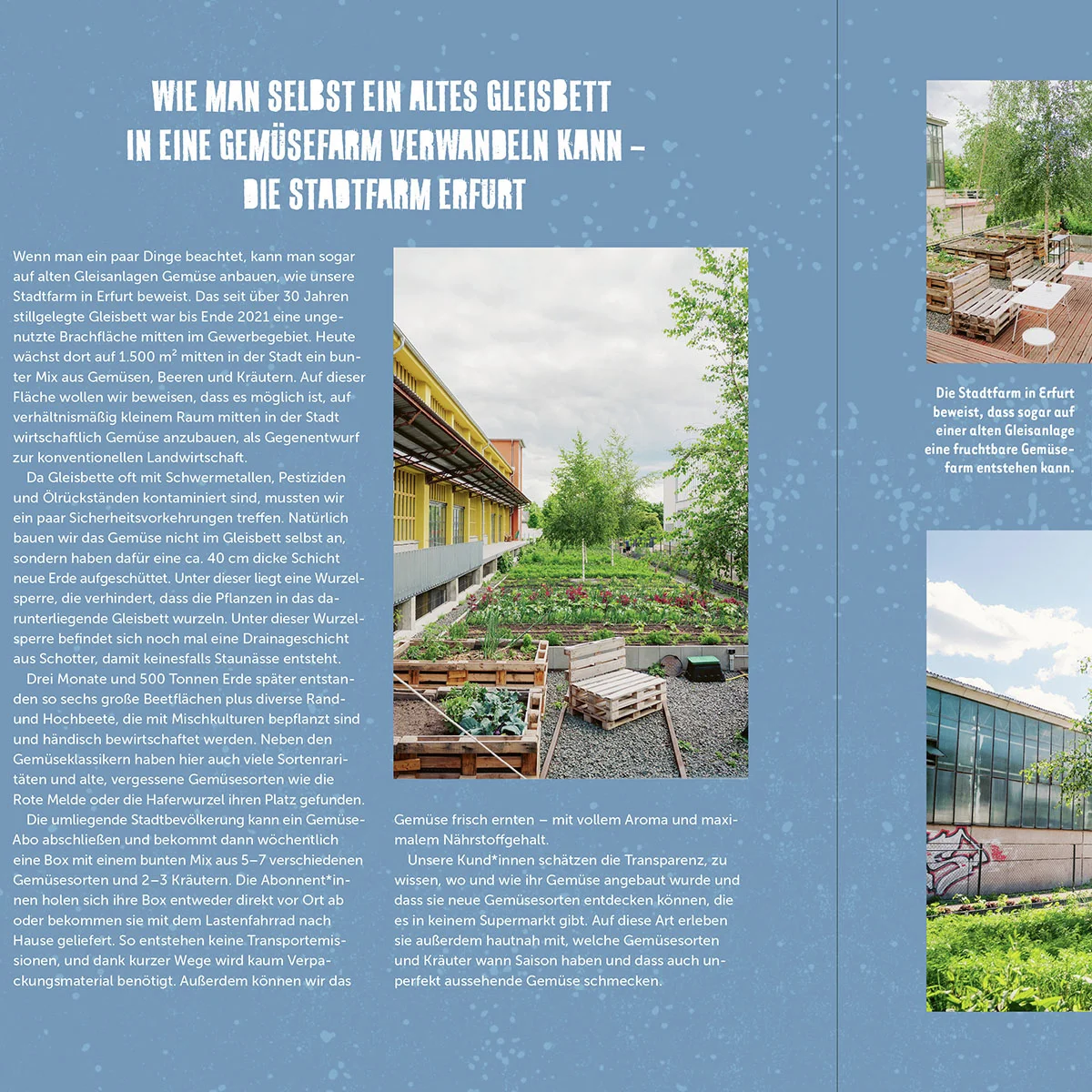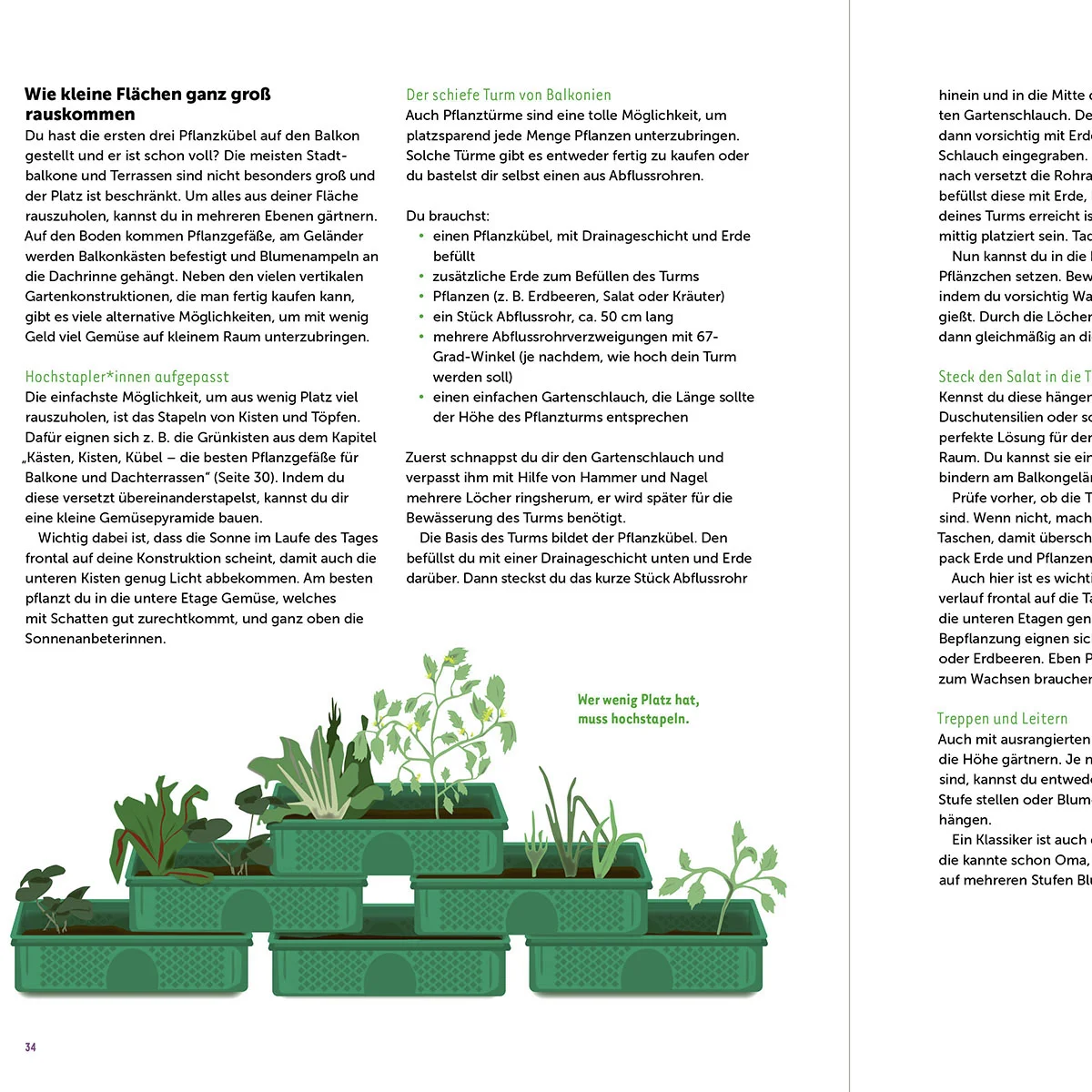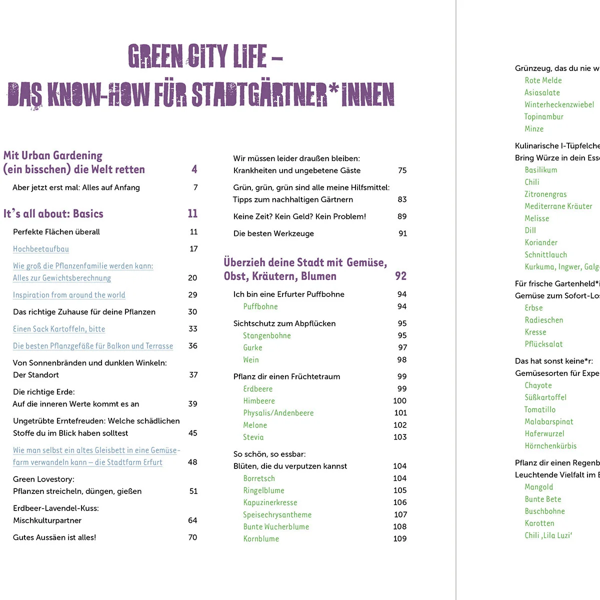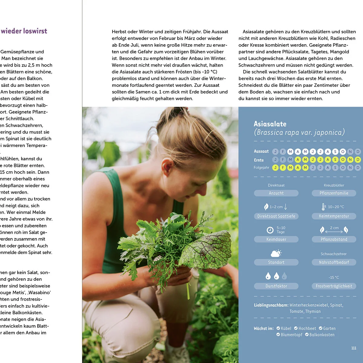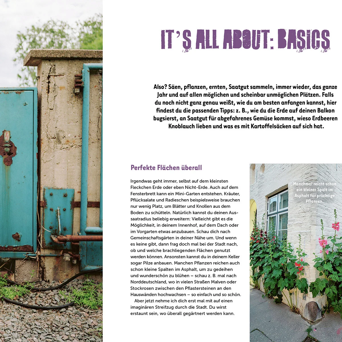 * Ernten auf kleinster Fläche: Egal, ob du auf Pflücksalat oder Zitronengras stehst, ob du Töpfe, Tröge, Beete oder Pflanzsäcke zur Verfügung hast, ob auf dem 1-m2-Balkon oder in deinem Gemeinschaftsgarten – hier wirst du zur*zum Stadtgärtner*in mit fetter Erntegarantie.