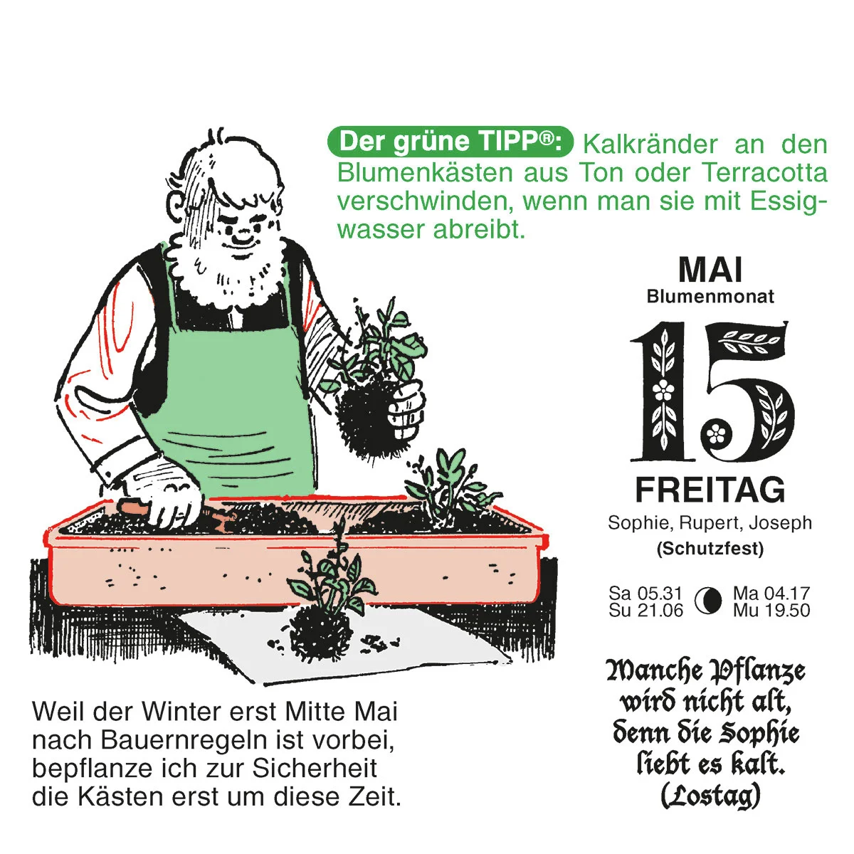 gibt es meinen beliebten Kalender jetzt auch im Maxi-Format. Ob Tipps, Bauernregeln oder Gedichte - alles ist größer geschrieben und daher besonders gut lesbar. So fällt die Lektüre leichter, und Sie haben täglich noch mehr Freude an diesem bewährten Ratgeber.