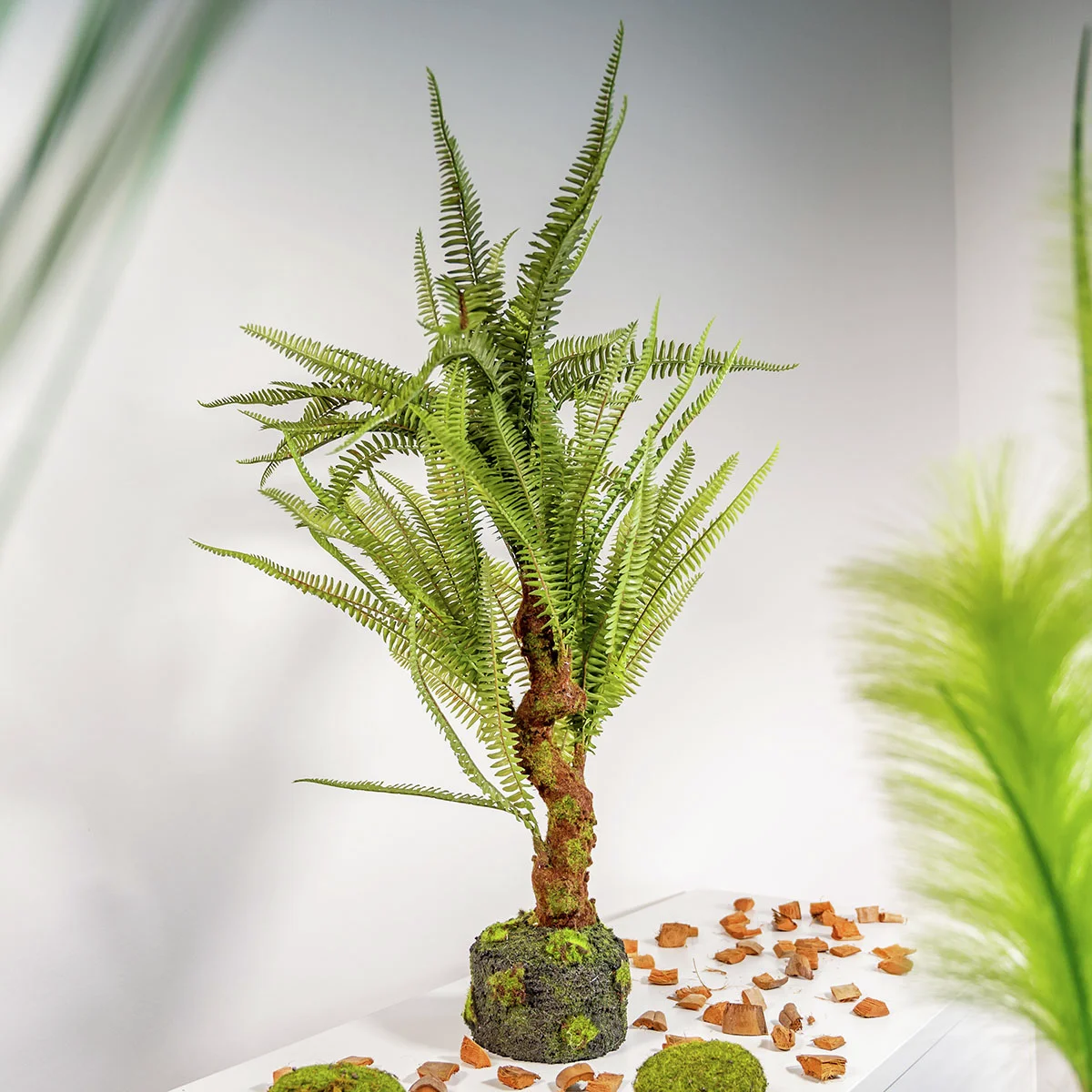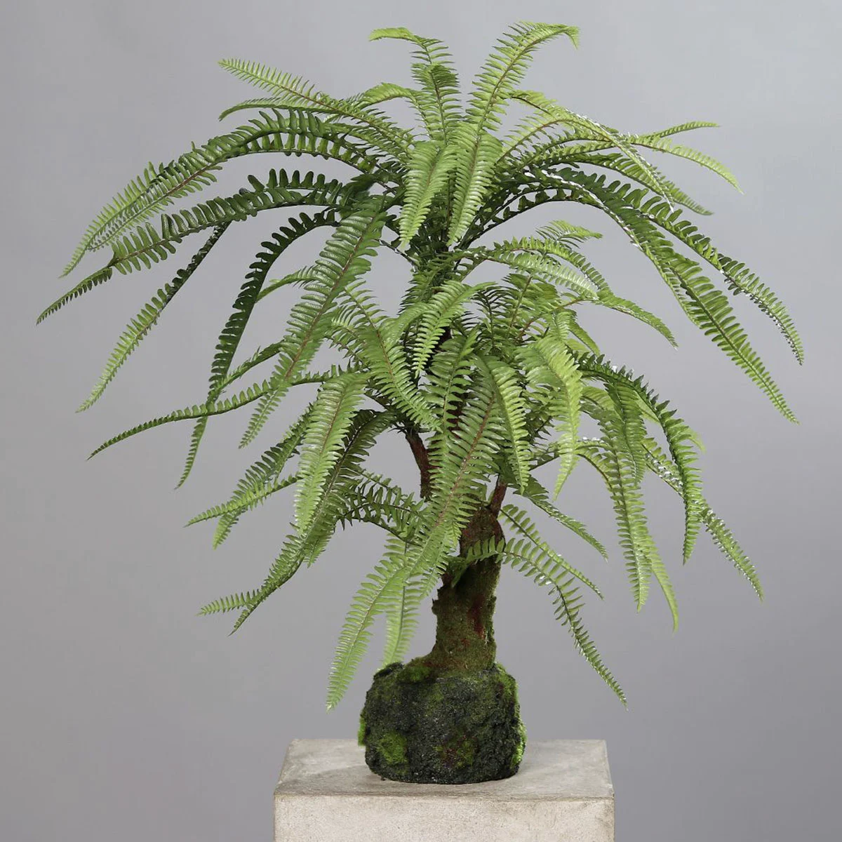 Holen Sie sich das Tropenfeeling mit diesem tollen Farn im Erdballen. Die Pflanze ist ca. 63 cm hoch und sehr detailreich verarbeitet. Neben den naturgetreuen Blättern wirkt auch der geharzte Ballen sehr echt. Der Farn eignet sich bestens für gläserne Gefäße, macht aber auch freistehend eine gute Figur.