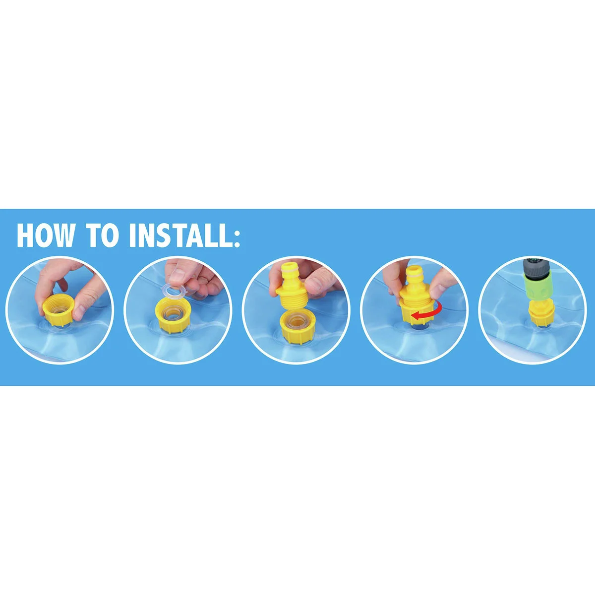 Die maxxpro Kühlmatte für Hunde ist innerhalb von Sekunden einsatzbereit. Nehmen Sie den Hundepool aus der Verpackung und legen Sie sie an einem geeigneten Ort im Garten aus. Schließen Sie dann den Gartenschlauch an das Ventil des Hundeplanschbeckens an. Das Wasser läuft über die Ränder des Hunde-Pools ein und erhöht den Druck. Wenn der Druck hoch genug ist, tritt das Wasser aus den Düsen aus und die Wasserspielmatte füllt sich gleichzeitig mit Wasser. Dank einer Verlängerung, die Sie an das Ventil anschließen können, passt fast jeder Gartenschlauch auf das maxxpro Hunde-Wasserspielzeug.