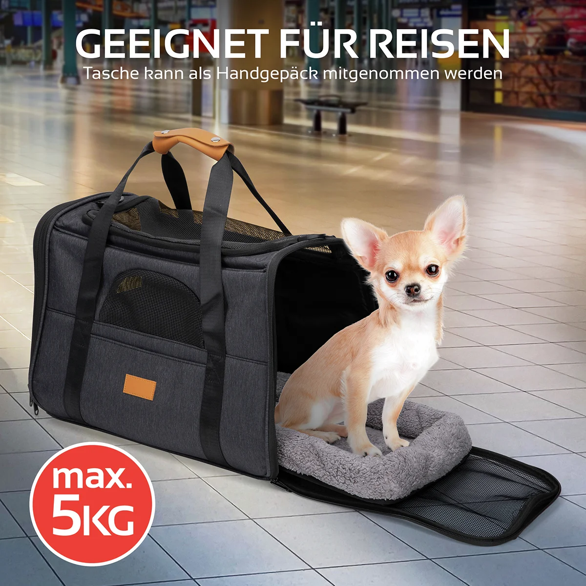 Reisetasche für Hund und Katze bis 5 kg, schwarz, 44x31x34 cm