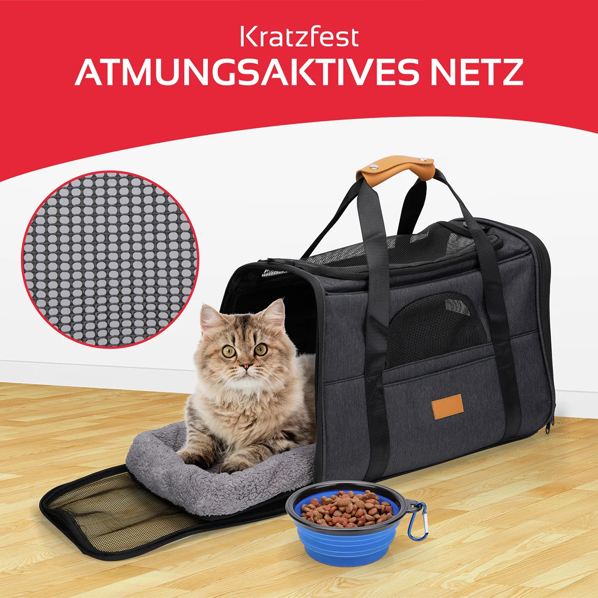 Katzen-/Hunde-Reisetasche, faltbarer Trinknapf, herausnehmbares Haustierbett, extra Schultergurt