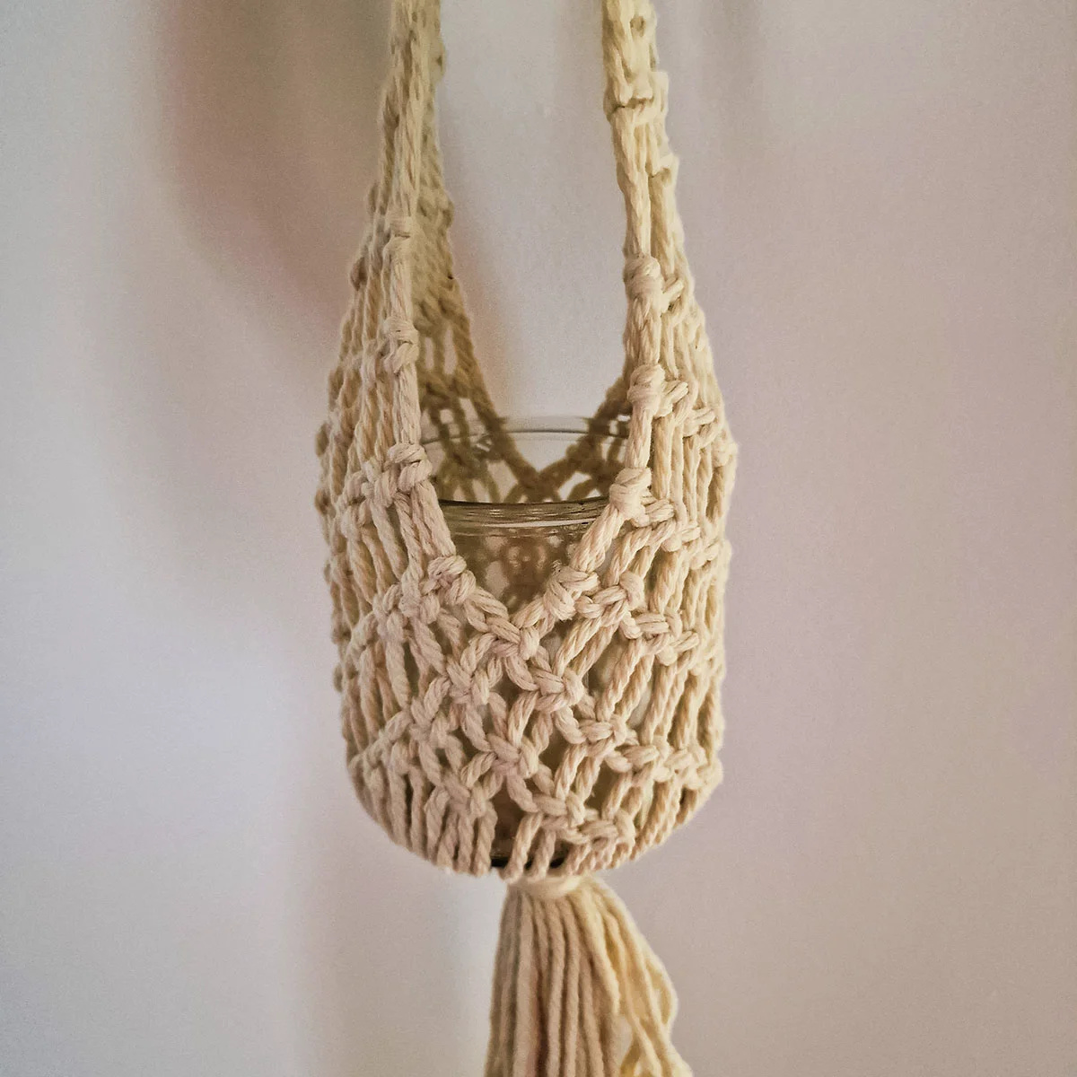 - Makramee-Aufhänger aus naturfarbenem Baumwollband