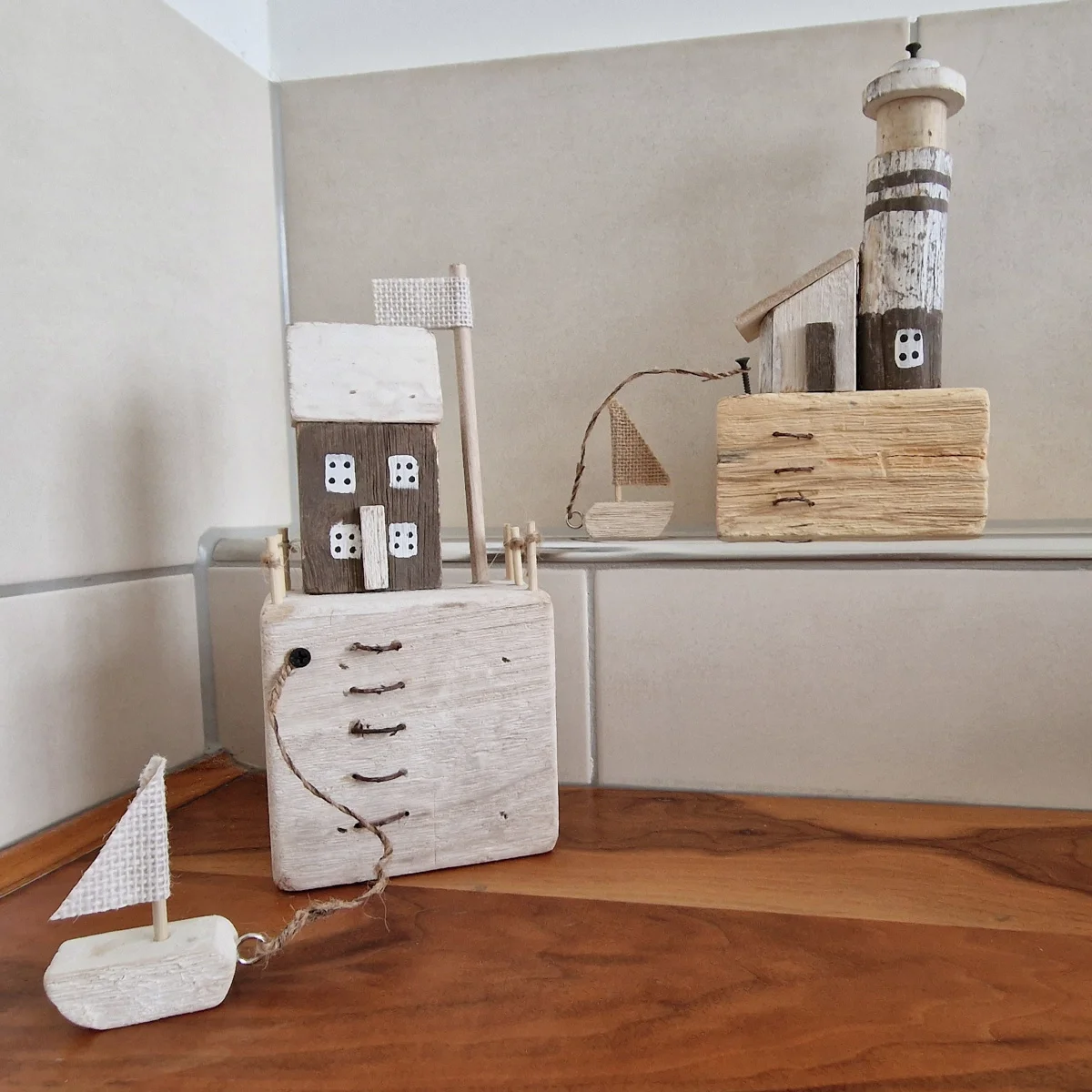 Treibholz-Leuchtturm und Haus, 2er-Set