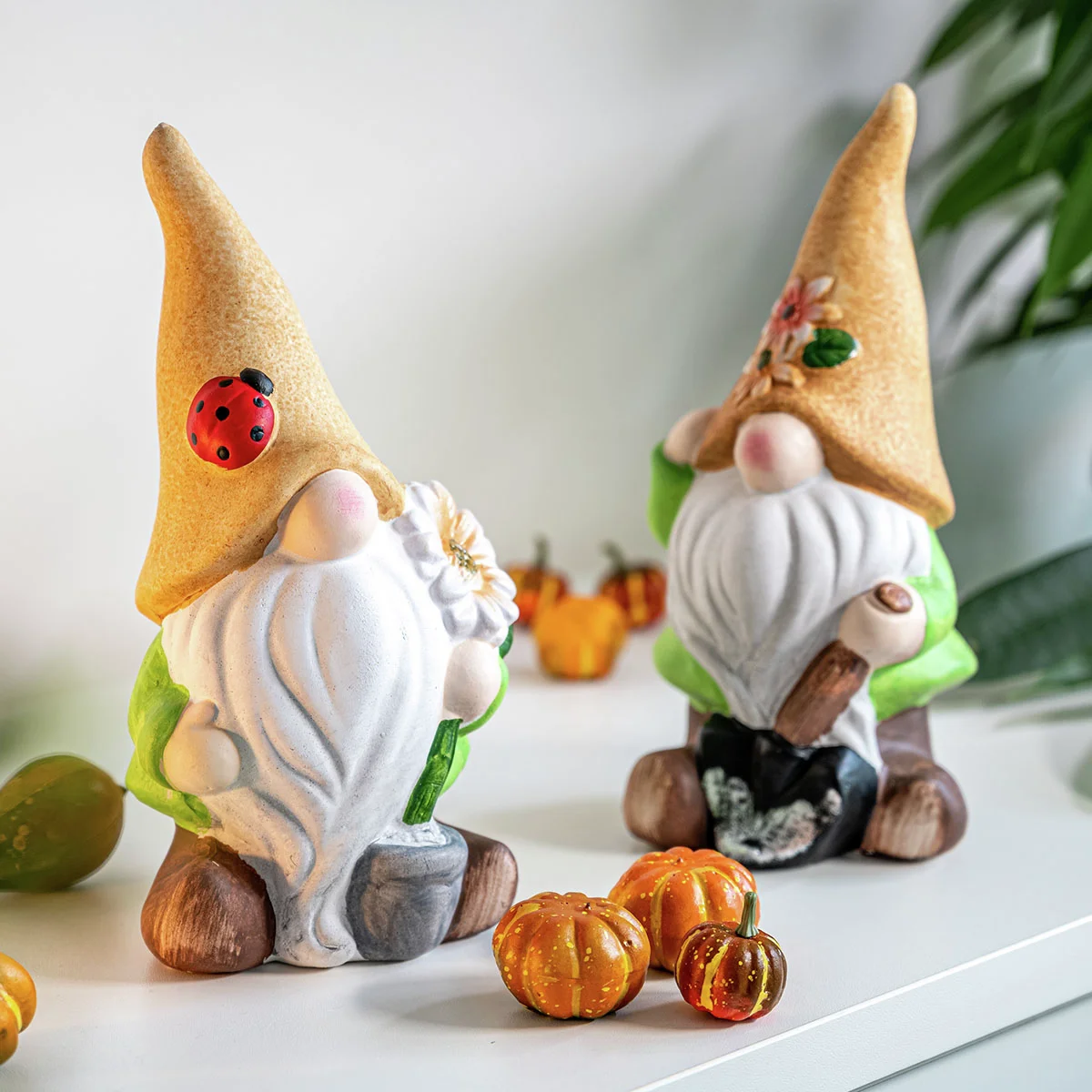 Die beiden süßen Wichtel haben die ersten Blüten entdeckt und heißen das Frühjahr willkommen! Detailreich aus hochwertiger Terracotta mit grünen, blauen und weißen Highlights gefertigt, zaubern die originellen Deko-Figuren jedem Betrachter ein Lächeln ins Gesicht. Einzeln und gemeinsam vielfältig einsetzbar.