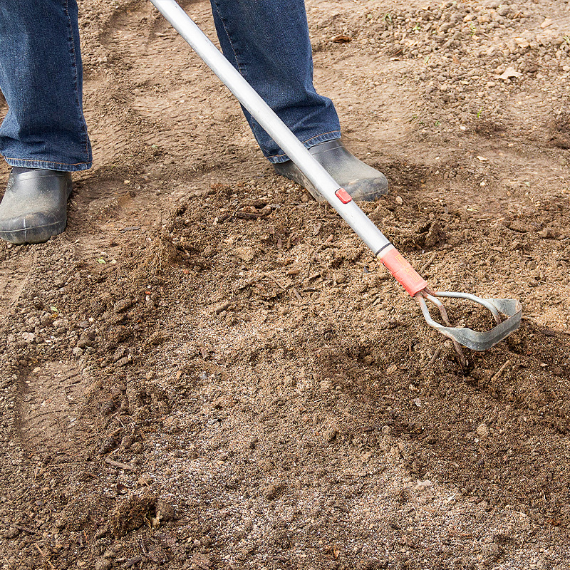 Das Einmischen gelingt am besten durch mehrfaches Durchziehen mit einem Grubber. Achte dabei auf eine ebene und planmäßige Bodengestaltung.