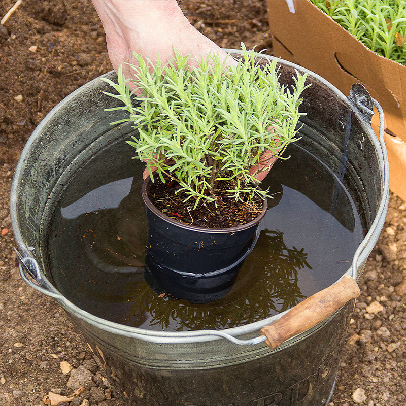 Feuchte vor dem Einpflanzen alle Pflanzballen durch Tauchen un einem Wassereimer oder in einer Wanne gründlich durch, so langem bis keine Luftbläschen mehr aufsteigen.